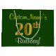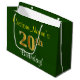 Grand Sac Cadeau Elégant, Vert, Faux Or 20ème Anniversaire + Nom
