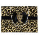 Grand sac cadeau brillant avec l'image d'un bel empreinte de léopard et ruban noir en option, arc noir et tête léopard dorée en or. Voir sac cadeau moyen assorti, confetti, ballotin, étiquette préférée et papier d'emballage. Voir l'ensemble de la collection de sacs-cadeaux Safari dans les TOUCHES SPÉCIALES | Section Favoris.