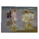 Ce dessin présente un tableau du peintre impressionniste américain Edward Henry Potthast (1857-1927). Il représente un groupe d'enfants qui pataugent dans l'eau tandis que les vagues lèvent contre leurs pieds sur une plage située sur la côte est des Etats-Unis d'Amérique. La scène peut être Brighton Beach à New York, où Potthast est souvent venu peindre. Les garçons portent des shorts et les filles soulèvent leurs robes, pour que leurs vêtements ne soient pas mouillés. Les filles portent des arcs dans les cheveux. Il y a aussi une femme avec son fils dans l'arrière - plan. Tout le monde s'amuse à la plage dans cette scène vintage de la vie américaine. L'oeuvre originale a été peinte par E.H. Potthast en 1920.