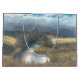 aquarelle sur soie - équipement manuel; eau dans le lac reflète le ciel d'automne froid.Artiste de Zolotareva.