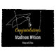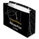 Un aperçu du casquette d'un diplômé est au sommet. Sous le casquette, il y a un modèle sur ce sac cadeau en noir, blanc et faux or. Le modèle vous permet de modifier le texte d'affichage. Vous pouvez changer le message, l'année où l'étudiant est diplômé, et le nom du diplômé. Un script d'or Faux (pas de feuille) forme le message. (Montré : Félicitations) Le texte blanc d'affichage est disponible pour le nom du diplômé et l'année où l'étudiant est diplômé. (Montré : Classe de 2021) Un motif de texte blanc pour l'année où l'étudiant est diplômé est également sur les côtés du sac cadeau.