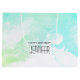 Joyeux sac cadeau d'anniversaire avec une bordure abstraite le long du dessus avec des couleurs tourbillonnant vertes et bleues. Un design doux et estival. Une lumière croise la texture derrière l'image.