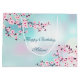 Un joli cerisier rose fleurit sur un arrière - plan de bokeh turquoise. Customisez-le avec un joyeux texte d'anniversaire et un nom dans une police élégante.