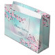 Grand Sac Cadeau Fleurs de cerisier rose Turquoise Anniversaire