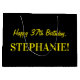 Grand Sac Cadeau Fun rose rayé "37"; Joyeux 37e anniversaire; Nom