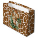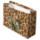 A Brown Giraffe Pattern Large Gift Bag With A Center Giraffe Eating Green Palms For Showers Or Birthday Gifts