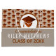 Concevez vos propres sacs cadeaux de graduation personnalisés avec ce casquette en cuivre faux cool et design de goût, une palette de couleurs neutres et du texte personnalisé. La moitié supérieure de ce grand sac cadeau comporte un motif de minuscules planches de mortier avec des tasselles sur un arrière - plan d'amandes chaudes grillées. Un casquette en cuivre plus gros et faux âge sur un demi-cercle de blanc criblé de pops brun foncé sur le motif. Customisez le texte sur la moitié inférieure couleur taupe de ce sac cadeau diplômé en ajoutant le nom de votre grade en blanc, CLASS OF et l'année en cuivre brun foncé et même Félicitations peut être édité à Notre diplômé ou Vous l'avez fait! si vous le souhaitez. Créez un sac cadeau de remise de diplômes d'une nature qui sera imprimé juste pour vous dans ce jeu de couleurs de la terre de bronze, taupe, brun et blanc pour apporter un peu de WOW supplémentaire à votre cadeau de remise de diplômes du lycée ou de l'université.
