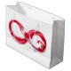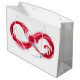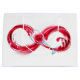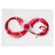 Infinity symbole of continuous stream of red pouring into glass glass glass on white background.