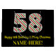 Ce sac cadeau de Noël simple et amusant et sur le thème de l'anniversaire du 25 décembre est doté d'un grand numéro "58" avec un motif rayé rouge, blanc et vert, avec le message "Joyeux 58e anniversaire et Joyeux Noël", et un nom personnalisé. L'arrière - plan est noir de couleur. Un sac cadeau comme celui-ci peut être utilisé pour envelopper des cadeaux ou des cadeaux qui sont donnés à quelqu'un dont le cinquante-huitième anniversaire tombe le 25 décembre (jour de Noël). [~Z0000407]