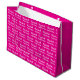 Le joyeux sac cadeau d'anniversaire est rose chaud. Il a un motif texte pour le nom du destinataire dans un script et la phrase Joyeux anniversaire. Le nom (Montré : Elizabeth) apparaît dans un script élégant. Le texte est blanc. Tout le texte peut être modifié.