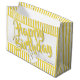 Grand Sac Cadeau Joyeux Anniversaire Jaune/Blanc Stripes Motif