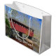 Ce grand sac cadeau comporte un pont couvert rouge dans les bois du Connecticut.