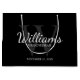 Ajoutez une touche personnelle à votre mariage avec un sac cadeau pour groomsmen personnalisé. Ce sac cadeau contient le nom du marionnettiste personnalisé en style de police de script classique blanc avec des détails mariages en style de police serif classique blanc et monogramme en style de police serif classique gris en arrière - plan, sur arrière - plan noir. Parfait aussi pour le meilleur homme, père de la mariée, porteur de bague et plus.