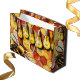 Ce grand sac-cadeau personnalisable a un arrière - plan de nid d'abeille en gras orange, jaune et rouge avec une jolie bourde nichée au coin inférieur des deux côtés. Des lampes à cordes de jardin ornent le dessus et les côtés de ce grand sac cadeau et vous pouvez customiser votre jardin et le message d'amour des abeilles en changeant la police et les mots sur l'avant. Une déclaration audacieuse et frappante pour votre présentation cadeau. Bon appétit !
