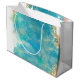 Grand Sac Cadeau Marbre d'Agate turquoise et blanc Nom Abstrait Mon