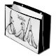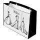 Sac cadeau sur le thème du mariage avec des illustrations élégantes de mariées. Le sac présente un design noir et blanc avec le mot "Mariage" affiché élégamment en haut.
