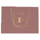 Grand sac cadeau modèle élégant moderne en or rose monogrammé.