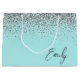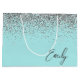 Girly Aqua Blue Silver Sparkle Parties scintillant Script Monogramme Nom Sac cadeau. Cela rend le sac cadeau parfait pour 16 ans, mariage, douche nuptiale, anniversaire, baby shower ou bachelorette pour quelqu'un qui aime le luxe glam et les styles chic.