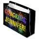 Cette conception de sac cadeau de félicitations amusante comprend le message "CONGRATS" avec les lettres ayant un look motif inspiré du spectre arc-en-ciel, avec un nom personnalisable, et un feu d'artifice coloré inspiré motif sur un arrière - plan sombre. Un sac cadeau comme celui-ci peut être une façon amusante d'envelopper un cadeau donné tout en reconnaissant quelque chose de notable que quelqu'un a accompli, ou de célébrer un événement important.