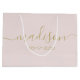 Sac cadeau personnalisé Girly Chic Feminine Gold Script Blush Pink sac cadeau Customisé pour votre événement! Une touche parfaite à votre mariage, réception, douche, fête ou événement.