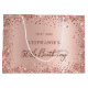 Girly Glam Modern Rose Gold Parties scintillant Foil Monogramme Nom 50e (ou N'IMPORTE QUEL ÂGE) Anniversaire Sac cadeau personnalisé personnalisé. Cette Fille Adulte feminine CINQUANTE (FIFTIETH) conception de fête d'anniversaire avec un nom de Monogramme dans un script de calligraphie manuscrit élégant et date et âge sur rose rousse ou rose faux feuille métallique brossé arrière - plan avec cadre de parties scintillant glam lâche. Idéal pour une fête d'anniversaire féminine adulte ou féminine, cela saisit parfaitement l'essence d'une fête d'anniversaire rose moderne en or ou en parties scintillant rose vif.