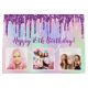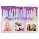 Pour un 16ème anniversaire girly et glamour (ou n'importe quel âge). Un arc-en-ciel, arrière - plan de couleur holographique avec des gouttes de parties scintillant rose et violet, la peinture goutte à goutte. Personnalisez et ajoutez 3 photos et 16 ans/texte.
