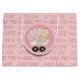 Nouveau sac cadeau bébé ou baby shower en rose avec une petite fille douce dans un buggy rose sur un arrière - plan de détails textuels avec les mots mignon bébé amour etc. sacs cadeaux de Ricaso buggy de www.digiwebstudio.com / www.cherylseslardesigns.com