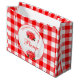 Faites vos cadeaux de fête de pique-nique spécial avec ce sac cadeau motif à chèque en en vichy rouge brillant. Personnalisez-vous avec un nom de famille et un pique-nique ou tout mot pour convenir à votre occasion.