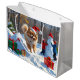 Grand Sac Cadeau Poméranien en neige avec Casquette de Noël