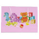 Ces adorables poupées peluches colorées sont prêtes à jouer ! Il y a un cheval bleu, un chien pourpre, un chat jaune, un ours en peluche, un canard en caoutchouc, une balle gonflable, et des cubes ABC. Ce design peut être customisé ou personnalisé en ajoutant votre propre texte et vos propres images.