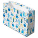 Ce fabuleux sac cadeau serait parfait pour tout cadeau que vous faites à Hanoukka. C'est un design adorable avec des cadeaux bleus multicolores et des arcs jaunes et des étoiles de David est propre et simple, festif et amusant! Obtenez assez pour envelopper tous vos cadeaux.