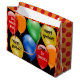 Ajoutez une touche personnelle à votre don. Ayez des sacs cadeaux d'anniversaire personnalisés prêts à partir! Ballons colorés et amusants à l'avant et à l'arrière avec les messages, "Joyeux anniversaire" et "Nos voeux les plus chauds" Il suffit d'ajouter votre nom de famille et vous êtes prêt pour n'importe quel anniversaire à tout moment!