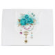 Clé d'or antique aux roses turquoise tendance décorée de feuilles d'or blanc et de perles rose et bleu. Couleur tendance. Rose turquoise. Blanc doré. Tiffany bleu.
