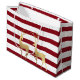 Maroon foncé rouge rayures horizontales sur blanc avec deux silhouettes de cerfs d'or en fait un choix chic de sac cadeau moderne pour toutes les occasions de vacances