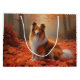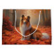 Grand Sac Cadeau Shetland Sheepdog en automne Feuilles automne Insp