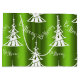 Un sac cadeau de Noël vert et coloré avec un motif d'arbres de Noël blancs et modernes et l'accueil festif de 'Be Merry', le tout sur un arrière - plan vert vibrant.