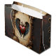 The pulsating heart of mechanics, a glowing steampunk heart. The frame features the characteristic steampunk style, characterized by a fascinating blend of Victorian elegance and industrial flair. Complex mechanical details such as intricate gears, screws, and bolts adorn the edge, lending depth and texture to the design. The heart is mechanically designed, with visible springs, small gears, and metallic embellishments that symbolize its vitality in a technical context. Flanking the heart are dark wings.