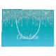 Un arrière - plan turquoise, bleu vert dégradé décoré avec des gouttes de parties scintillant faux, la peinture goutte à goutte. Personnalisez et ajoutez un nom et des initiales monographiques. Un script de style moderne, en lettres blanches. Pour l'emballage cadeau ou les faveurs de fête pour les fêtes d'anniversaire, douches nuptiales ou baby showers.