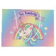 Ce sac cadeau personnalisé mignon et coloré présente une belle illustration d'un arc-en-ciel couleur unicorne et pastel. sur un arrière - plan en arc-en-ciel dégradé. La parties scintillant en or faux accentue les parties supérieure et inférieure. De petites étoiles aux couleurs assorties entourent l'arc-en-ciel. Une bannière est imprimée au-dessus de la licorne avec un exemple de nom imprimé ci-dessous dans une police de caractères violets élégante. Vous pouvez personnaliser le sac cadeau pour inclure votre propre nom ou texte personnalisé.