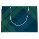Grand Sac Cadeau Vacances classiques plaid bleu vert Noël