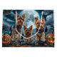 Libérez l'esprit éffrayant avec ce design d'Halloween étrange avec une meute de chiens sous un ciel sombre et clair de lune, entourée de chauves-souris volantes et de citrouilles brillants. Parfait pour ceux qui aiment une touche de plaisir effrayant avec leurs amis en fureur !