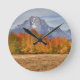 Grand Teton NP, Mount Moran and aspen trees Round Clock