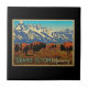 A group of buffalo graze in the meadow while the magnificence of the snow-capped Grand Teton mountains tower in the distance.