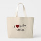 Ce sac fourre-tout est une belle toile d'une scène londonienne hivernale. L'image capture une journée cosy et couvert avec des dessins iconiques en noir et blanc au trait de Big Ben et Tower Bridge. Au premier plan, un éclat de rouge éclatant se démarque sous la forme d'une boîte téléphonique classique et d'un bus à deux étages qui descend dans la rue. L'expression "I love London in winter" est écrite dans une police simple et élégante en bas, complétant le design. L'ensemble allie le charme classique de Londres à une touche de design moderne et graphique.