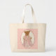 Sac fourre-tout jumbo naturel 100% coton avec l'image de Priscilla, un ours en peluche brun habillé d'une belle robe rose et dorée, dans un ovale blanc avec une bordure rose sur un arrière - plan de pois blancs sur rose ; le sac cadeau parfait pour un cadeau baby shower. Voir l'ensemble de la collection de Sacs fourre-tout pour enfants dans les TOUCHES SPÉCIALES | Section Favoris.