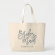 Scénario Bridesmaid tendance, bleu poussiéreux, sac fourre-tout personnalisé. Le design comporte une ligne de texte modèle unique pour le nom en bleu poussiéreux correspondant.
