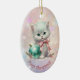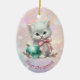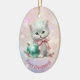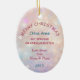 Here's a beautiful keepsake ornament for the first Christmas of that very special granddaughter. The front has an image of an adorable white kitten wearing a pink bow and sitting with a pretty teal tree bulb. The image is placed on a pale pink and lavender bokeh background. There is a custom text field at the bottom that currently says "First Christmas", but you may change the text or remove it completely, if you'd like. The back of the ornament has the same background, with text fields for you to customize. Make it say whatever you'd like!