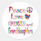 Share the love for your granddaughter with this colourful design with a peace sign, heart, and the words Peace Love Hugs and granddaughters.