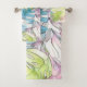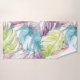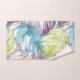 Grande aquarelle tropicale feuille colorée Peinture d'aquarelle d'aquarelle Peinture de quelques très grands feuilles tropicaux de plantes tropicaux. Les feuilles sont de forme et de taille similaires, et les couleurs utilisées dans cette aquarelle sont un mélange de couleurs chaudes et cool, comme le rouge et le violet, le gris foncé et un feuille turquoise et vert. Ce design présente une végétation tropicale riche et luxuriante.