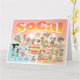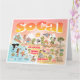 Une scène lumineuse et colorée offre une vue spectaculaire de la Californie du Sud - personnages farfelus sur la plage et le désert de SoCal présentant Los Angeles, San Diego, Orange County, Père Noël Barbara, Riverside, Palm Springs, Anza Borrego et Joshua Tree parcs ainsi que les villes frontalières de Tijuana, Tecate et Mexicali. Cette scène pleine de charme a tout - un surfeur pend dix tandis qu'un orque saute de l'eau, des animaux de zoo accueillent les touristes, un couple de plage musclé à flex pour impressionner comme un T-Rex rugit un défi et un réservoir se met en position et bien plus encore...